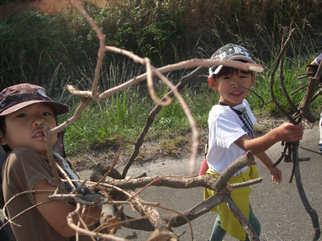 散歩へ行き、自然の中で草花を摘んだり虫を捕まえたり、楽しみはたくさんです。散歩はたくましい足腰と豊かな心を育てます。