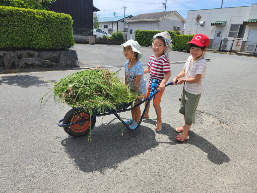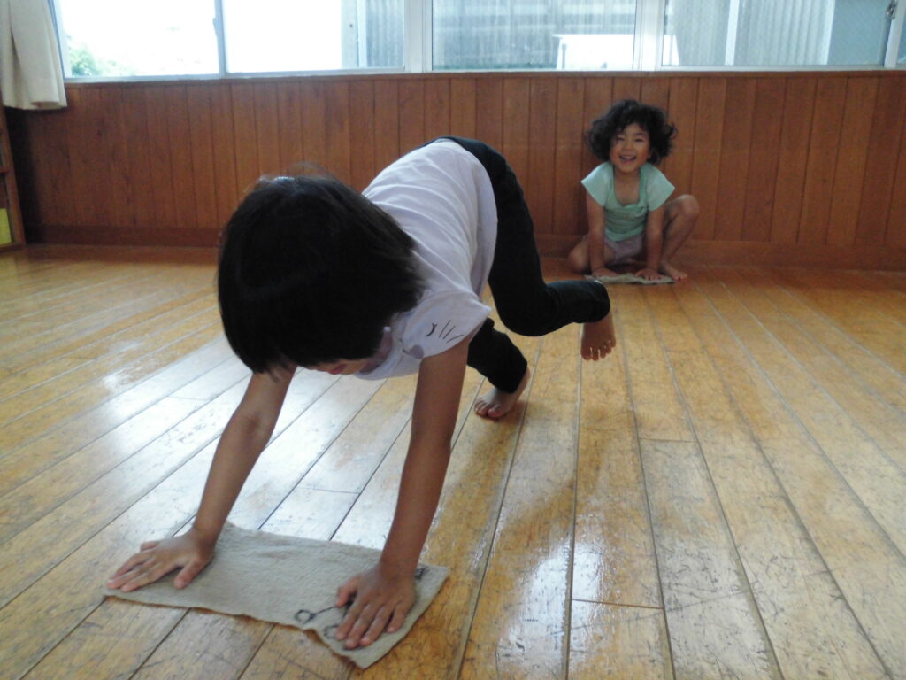 自分たちの園舎をきれいに保とうという心と、周りの人のために働くという心を育てます。足腰が強くなり、手の力、腕の力もつきます。