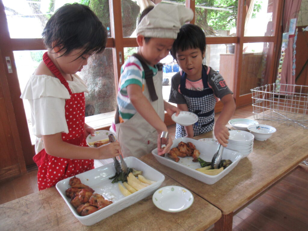 食べることは全ての意欲の基礎です。給食、おやつにはできるだけ安全で添加物の少ない食材を使い、砂糖漬け、油漬けにならないよう配慮しています。