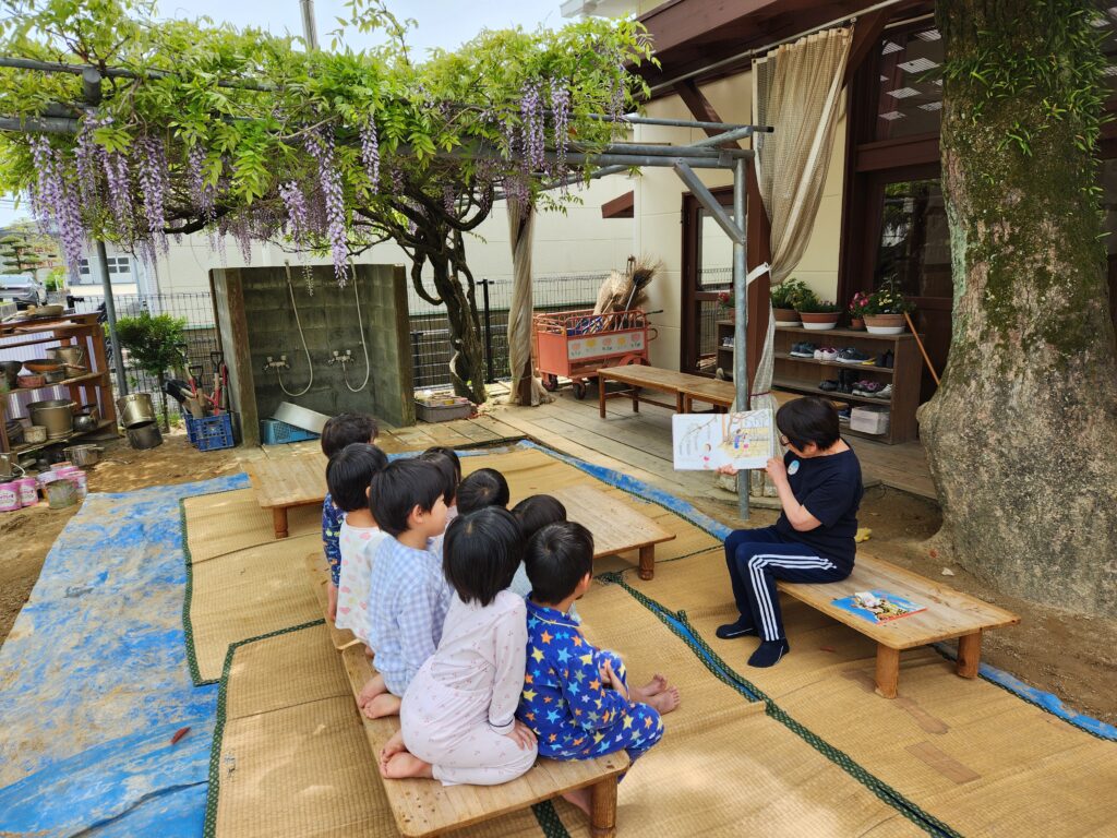 園では、絵本や紙芝居の読み聞かせを大切にしています。大人の読む声と絵から受けるイメージが子どもの想像力を豊かにします。